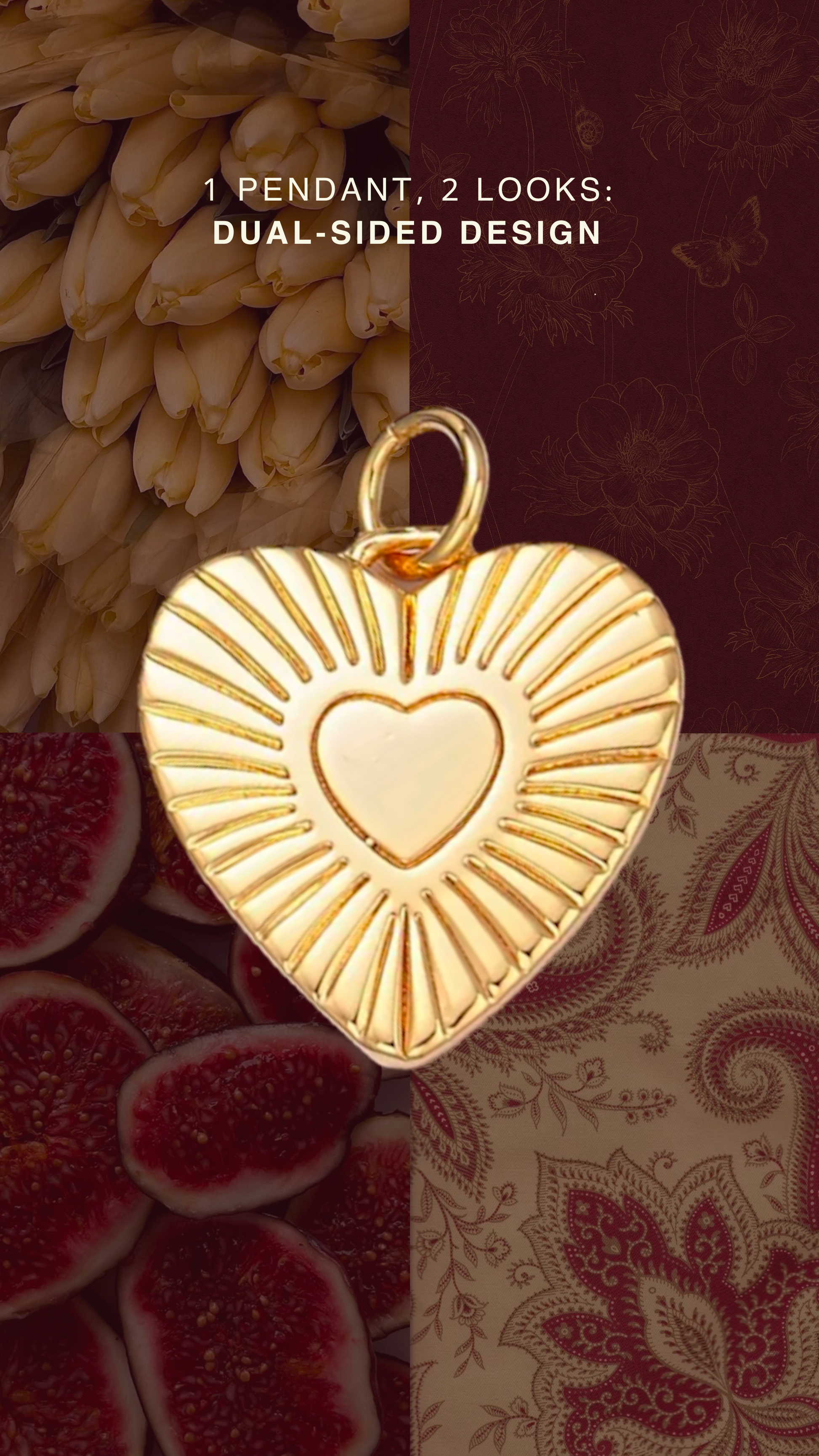 - Features a dual sided design with a letter on front and a starburst heart back